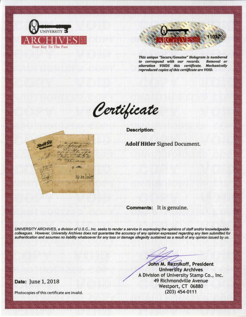 We offer the following services for your Adolf Hitler autograph letter signed: