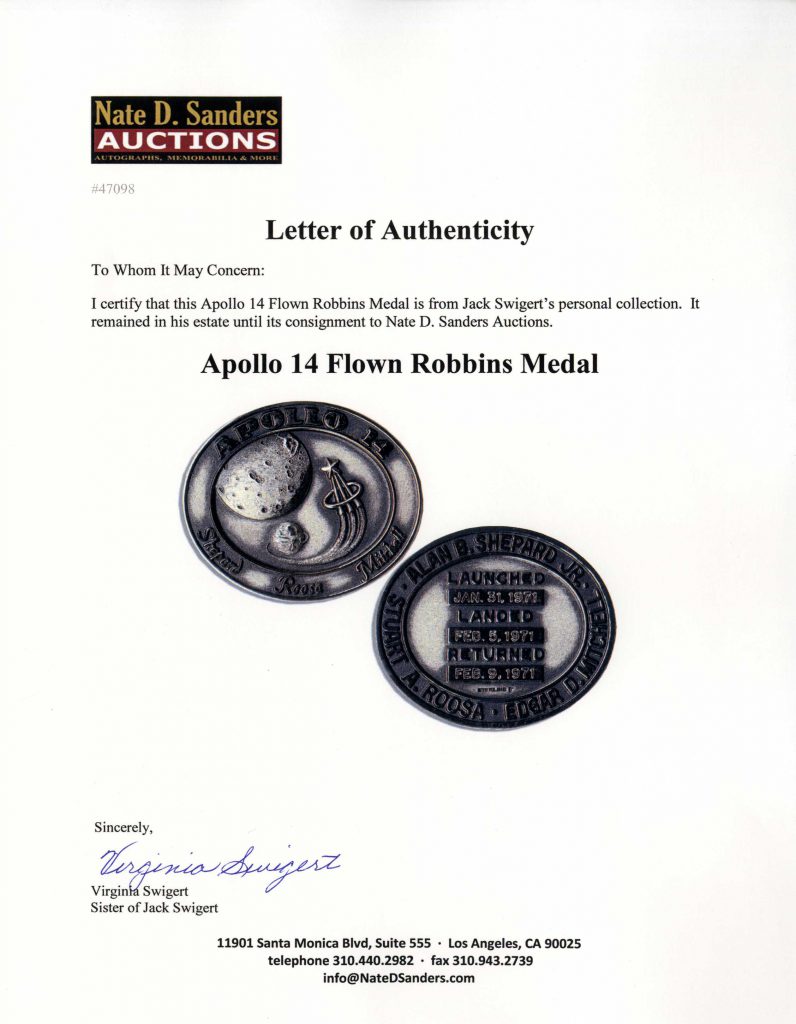 FREE ESTIMATE. To buy, auction, sell or consign your Apollo 14 Robbins medal that is for sale, please email your description and photos to [email protected] of Nate D. Sanders Auctions (http://www.NateDSanders.com).