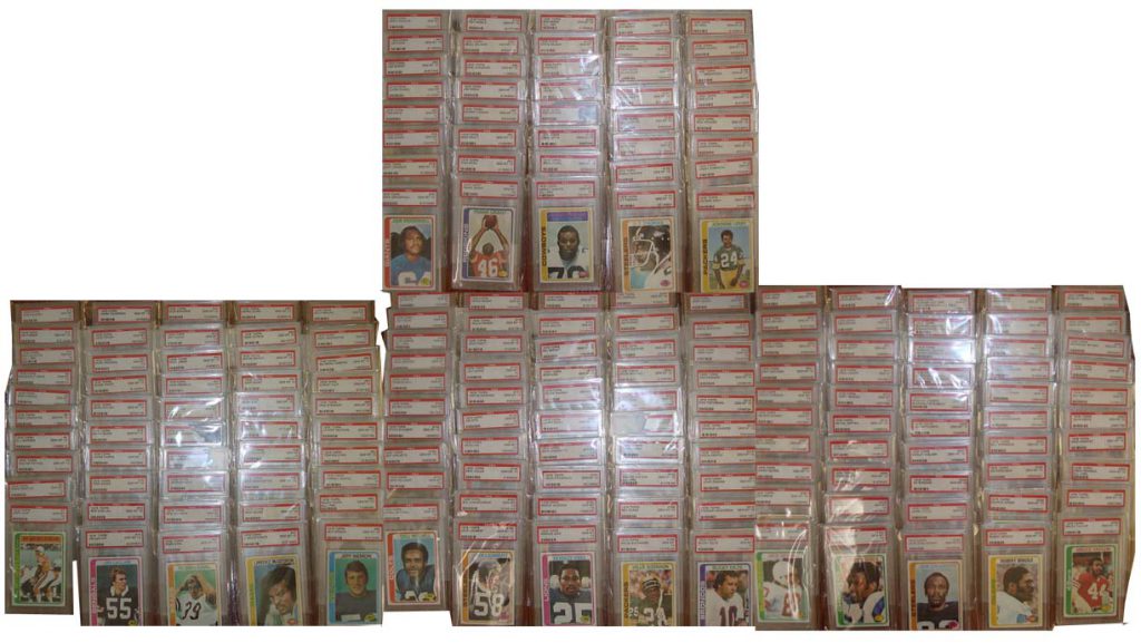 1978 Topps Football Complete Set of 528 Cards — Number of Cards That Have the Highest Possible Grade: 458 — Number of PSA 10 Graded Cards: 370 — Number of PSA 9 Graded Cards: 157 — Number of PSA 8 Graded Cards: 1 — Number of Cards With a Qualifier: none — Number of Cards With a Population of One: 53 — Number of Cards With a Population Of Two: 68 — Number of Cards With a Population Of 5 Or Less: 267 — Number of Cards With a Population Of 10 Or Less: 397. Sold for $22,500.