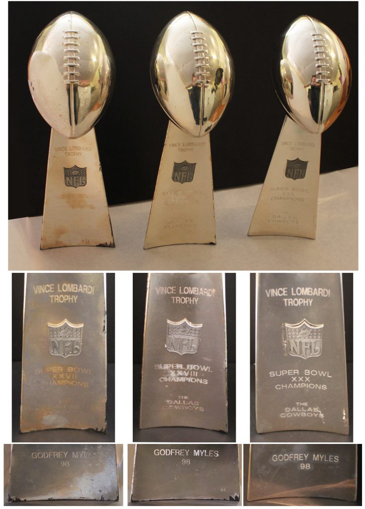 Vince Lombardi Super Bowl XXVII, XXVIII & XXX Trophies — Given to Dallas Cowboys Linebacker Godfrey Myles