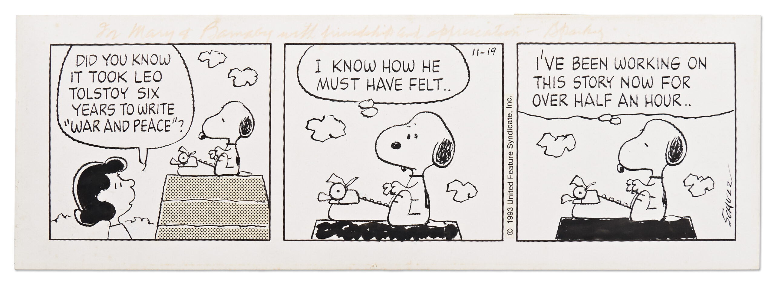 1993 Daily Strip Featuring Snoopy as a Novelist – Sold for $40,534