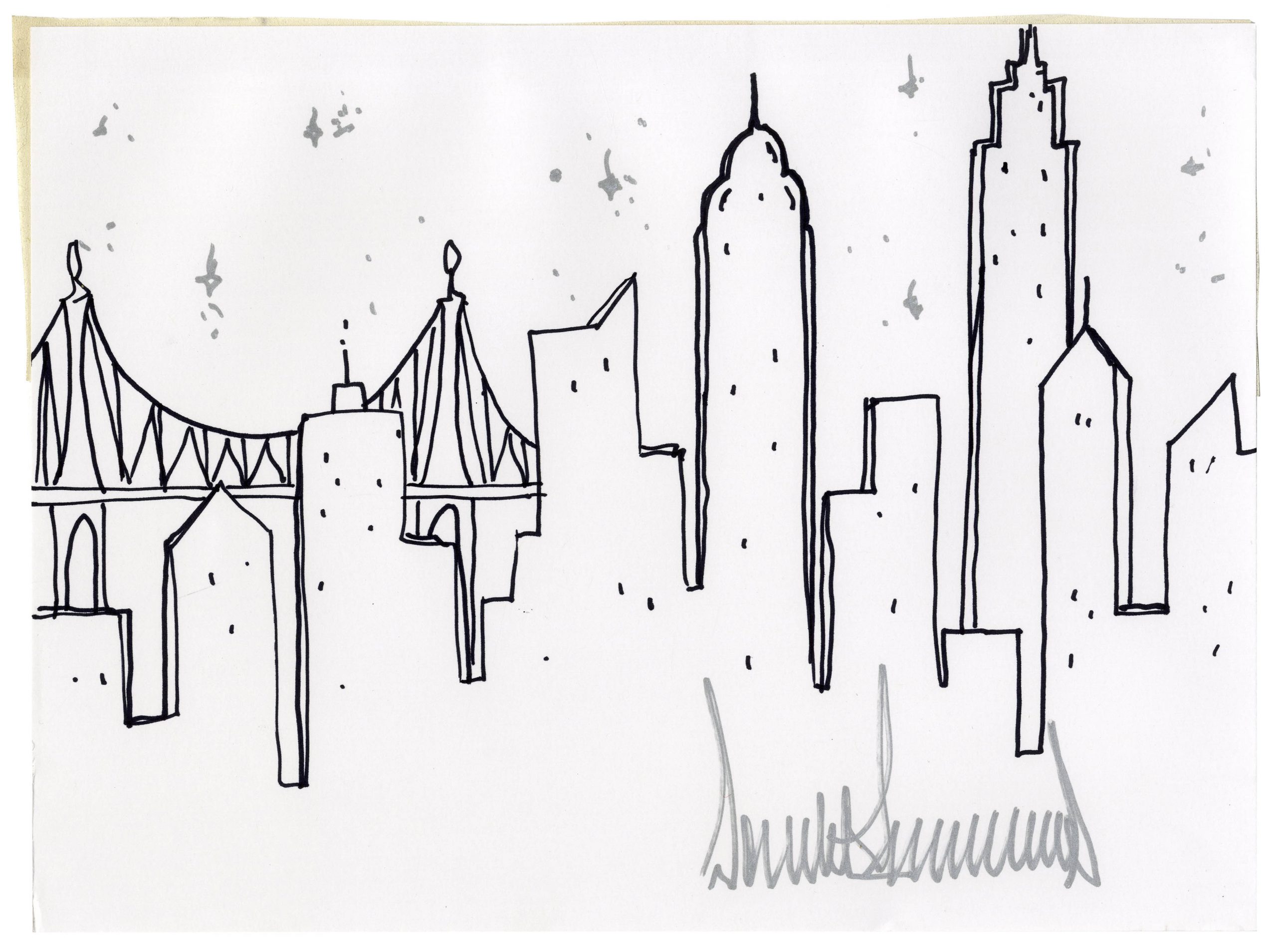 Donald Trump Signed Drawing of the New York City Skyline — Rare Original Artwork by the President