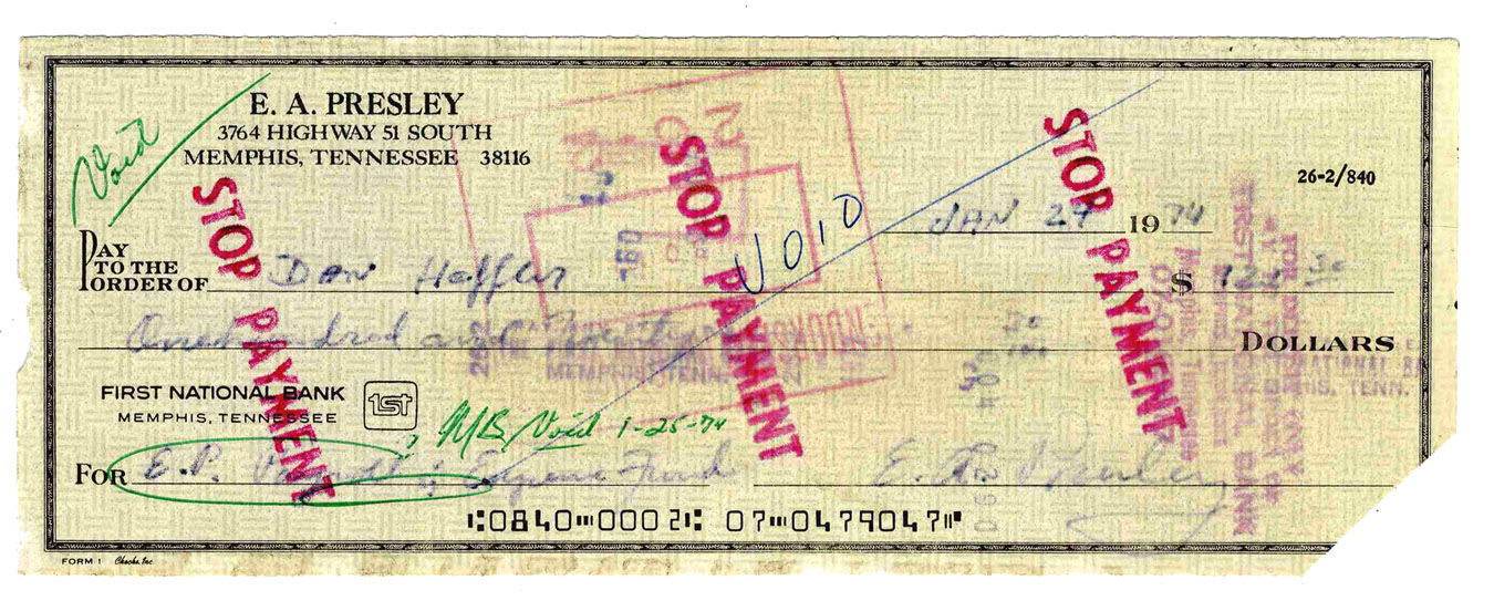 Signed Elvis Presley Check