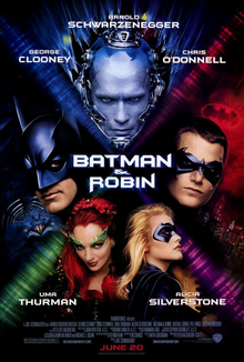 Batman & Robin is a 1997 American superhero film based on the DC Comics characters Batman and Robin. It is the fourth and final installment of Warner Bros.’s initial Batman film series, a sequel to Batman Forever and the only film in the series made without the involvement of Tim Burton in any capacity. Directed by Joel Schumacher and written by Akiva Goldsman, it stars George Clooney replacing Val Kilmer as Bruce Wayne / Batman, Arnold Schwarzenegger as Victor Fries / Mr. Freeze, and Chris O’Donnell reprising his role as Dick Grayson / Robin, alongside Uma Thurman, Alicia Silverstone, Michael Gough, Pat Hingle, and Elle Macpherson. The film follows the titular characters as they attempt to prevent Mr. Freeze and Poison Ivy from taking over the world, while at the same time struggling to keep their partnership together. It is also to date the only live-action film appearance of Batgirl, portrayed by Silverstone, who helps the titular characters fight the villains.