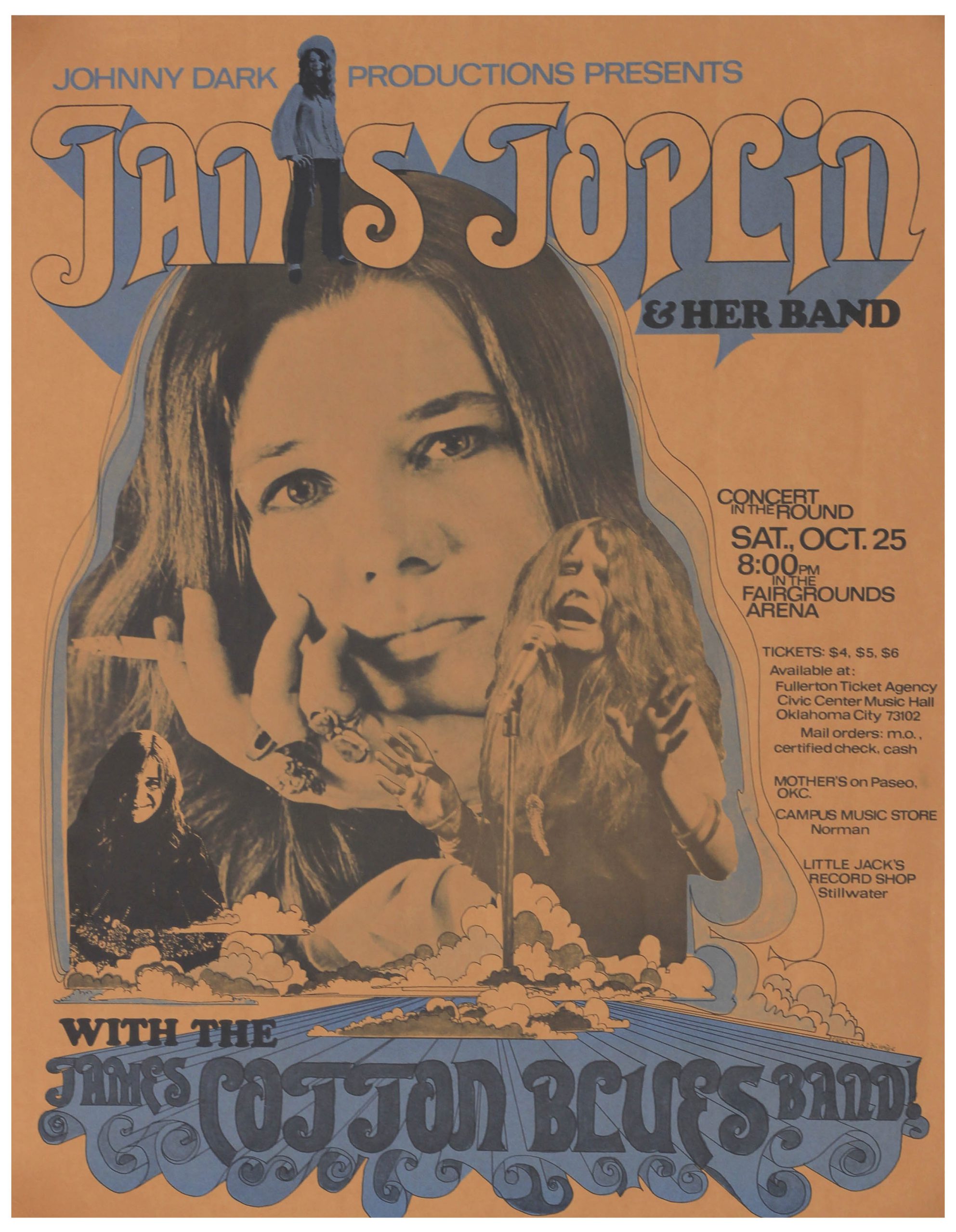 Janis Joplin First Printing Concert Poster — For Show on 25 October 1969 in Oklahoma City