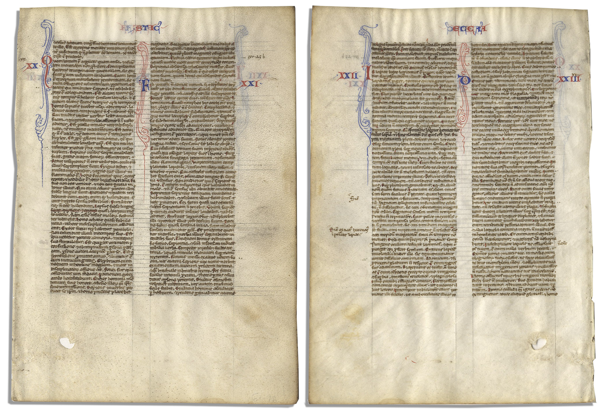 Very Rare Medieval Bible Manuscript Leaf — Produced in Germany Circa 1150 — Large Bifolium Leaf Measures 14.5″ x 9″