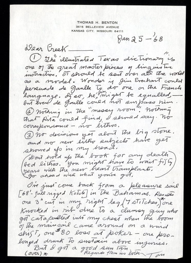 We also sold this Thomas Hart Benton archive, which included several autograph letters and notes: